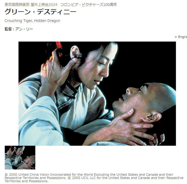李安导演的《卧虎藏龙》将作为户外上映影片。