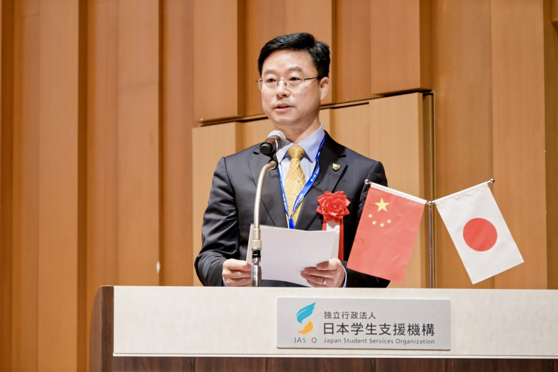 中华人民共和国驻日本国特命全权大使吴江浩,中国教育国际交流协会副会长、秘书长杨军、日本学生支援机构理事长吉冈知哉,日本文部科学省高等教育局督学伊东阳子等领导和嘉宾出席会议并致辞,中国教育国际交流协会基础教育合作部五级职员 张琼琼主持大会开幕式。