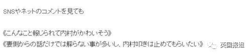 “只听妻子那边的话,有很多事不明白,希望不要再打击内村了。”